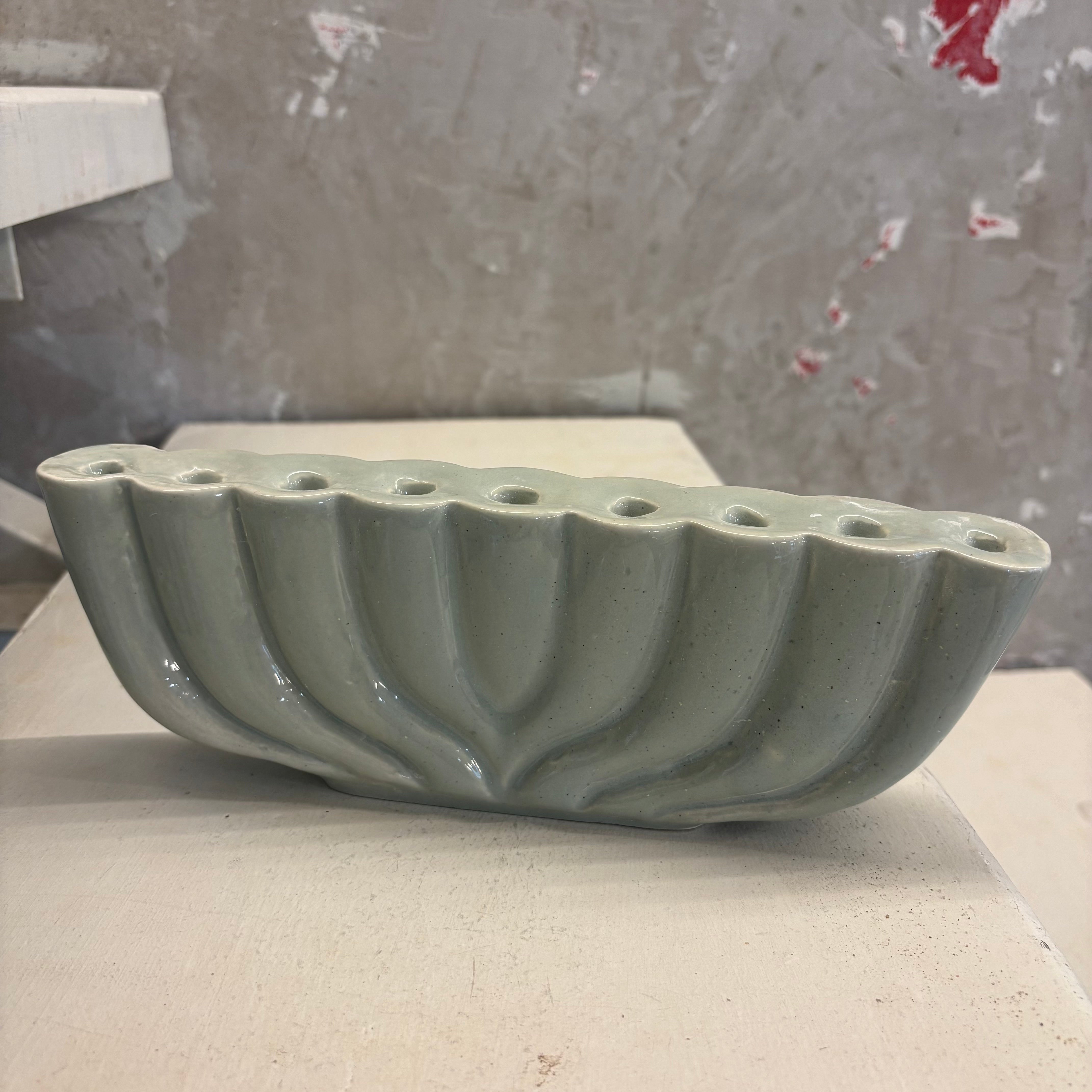 Porcelain chanukiah that forms a shell. It can be a really unique piece on your side-board when not in use.